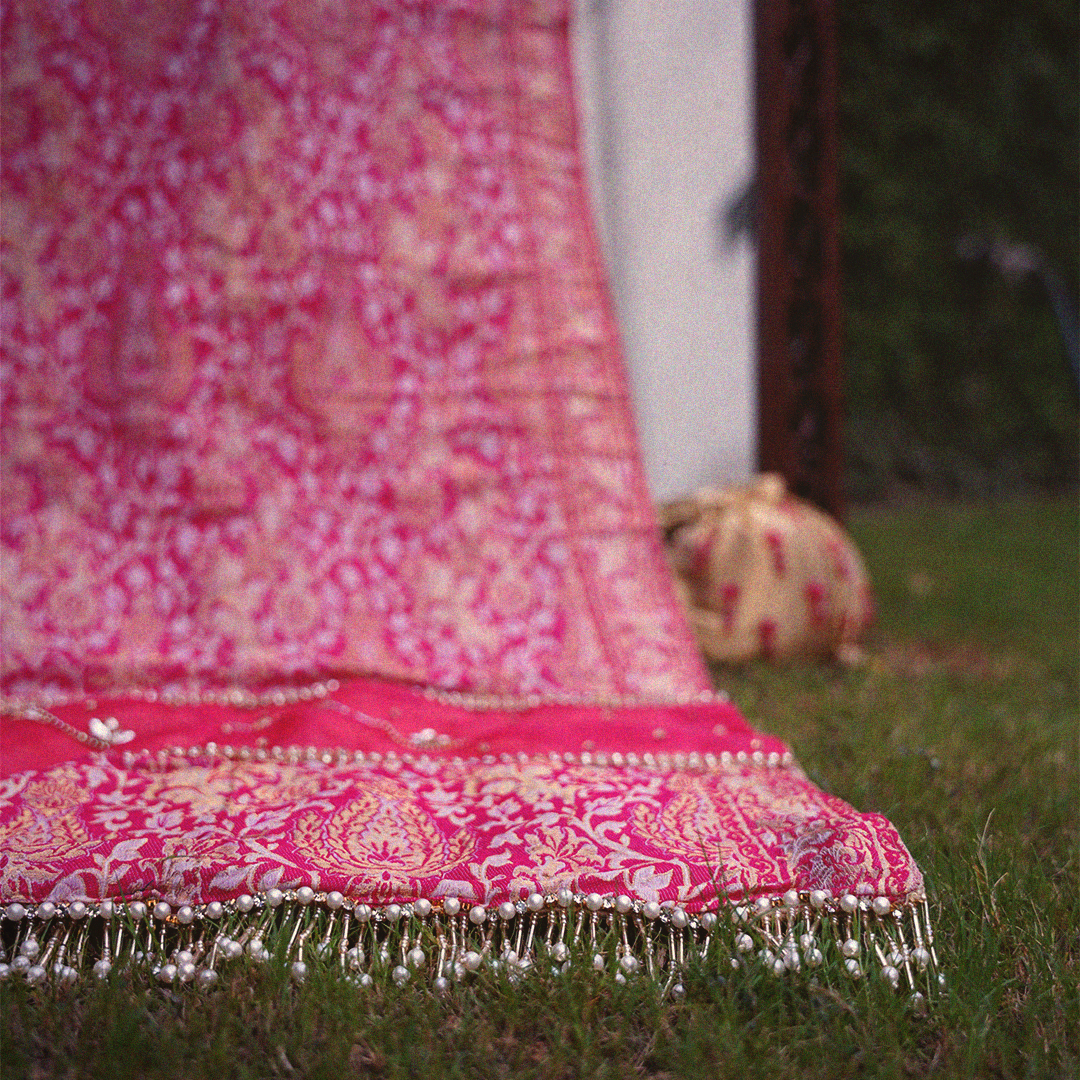A handcrafted jamawar woven with whispers of tradition and timeless charm. It is a perfect symphony of heritage and modern grace.